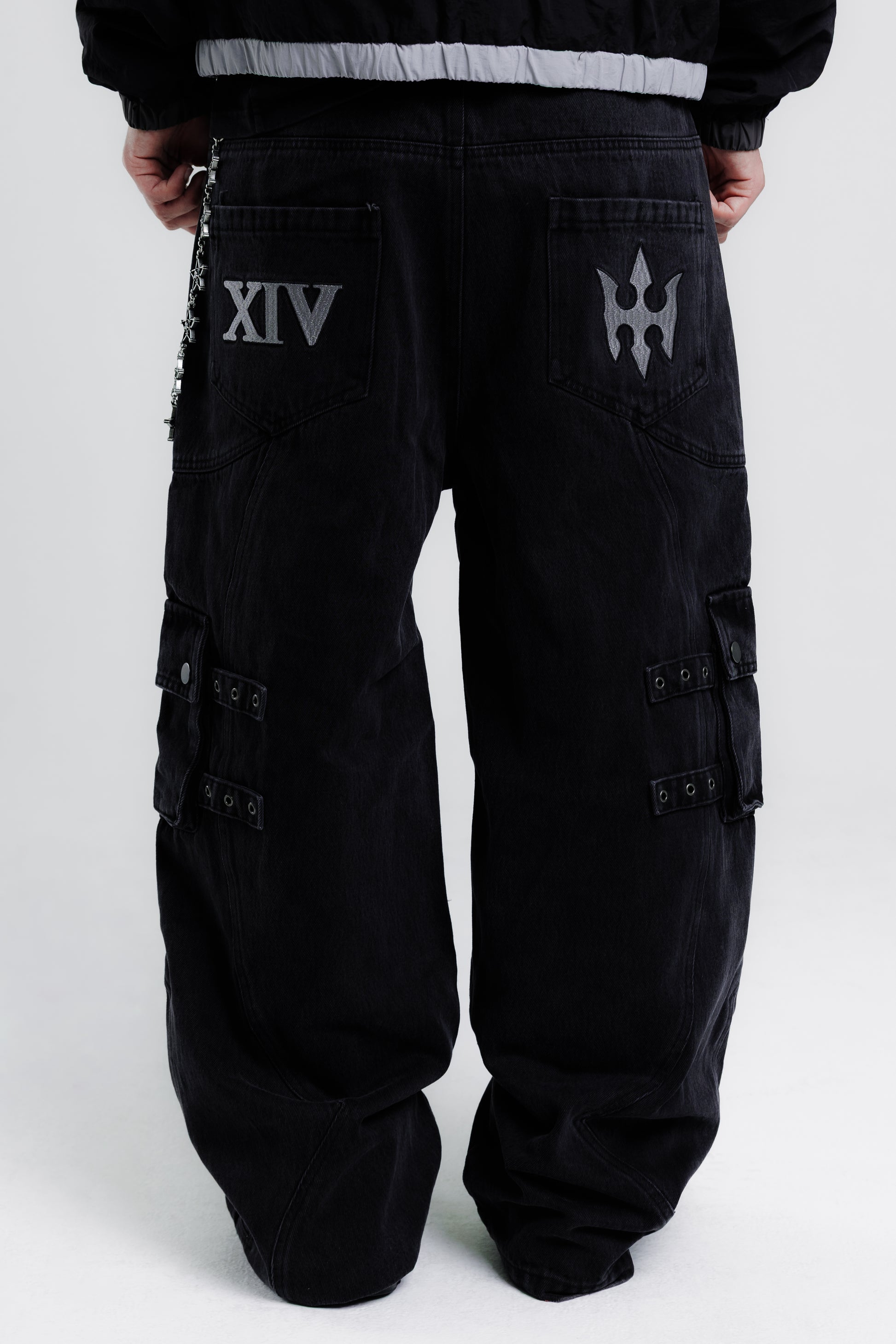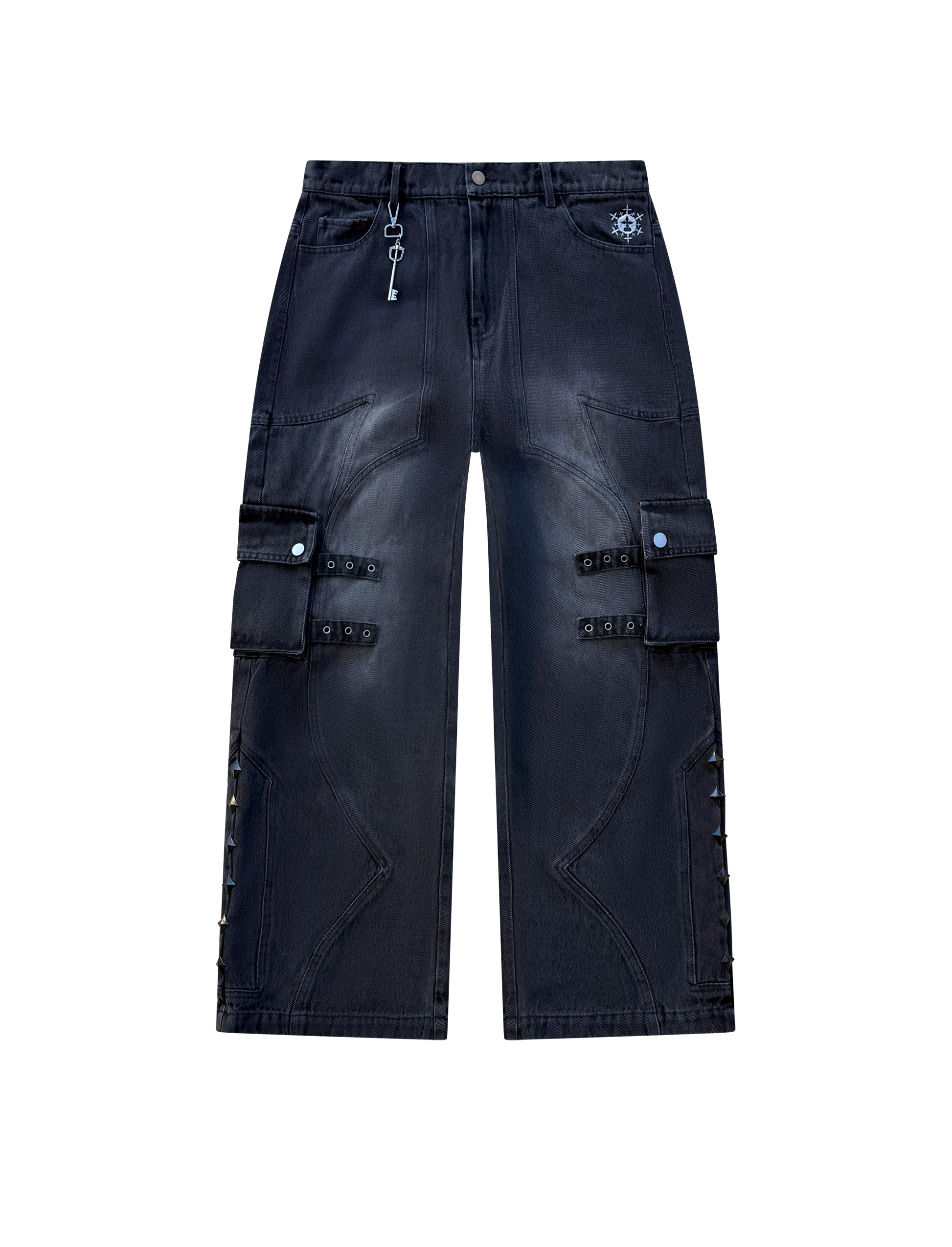 -custom front & back splicing pattern with cargo pockets & straps